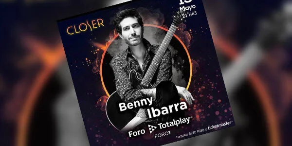 Benny Ibarra se presentará nuevamente en el Foro Totalplay el próximo miércoles 13 de mayo en punto de las 9 de la noche, bajo el concepto Closer.